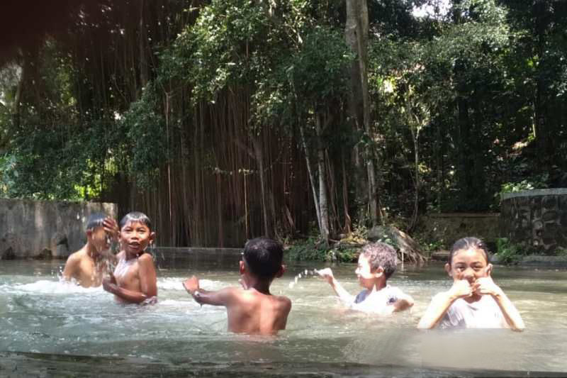 Sejak pagi anak-anak sudah mulai berdatangan di Mata Air Rowali dan menjadi semakin ramai pada siang dan sore hari.