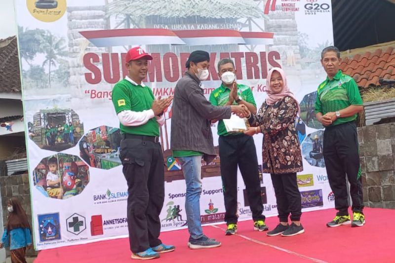 Bupati Sleman Kustini Sri Purnomo menyerahkan SK Desa Wisata Rintisan kepada pengelola Deswita Katris di pojok Dusun Karang, Trimulyo, Sleman, Ahad (28/8/22). ANTARA/HO-Deswita KatrisElshinta.com - Desa Wisata Karang Trimulyo, Sleman (Katris) Kabupaten Sleman, Daerah Istimewa Yogyakarta, mengagendakan kegiatan rutin dolanan (permainan) anak zaman dulu sebagai upaya menjauhkan anak dari ketergantungan gawai atau gadget.