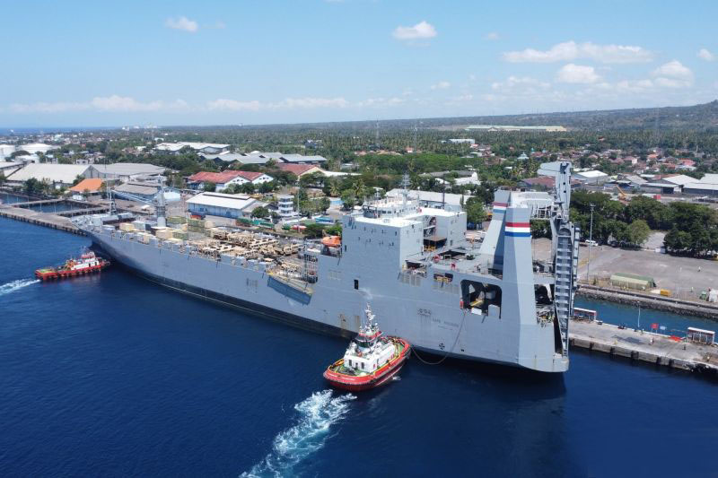 Kapal angkut Amerika Serikat MV Cape Hudson sandar di Banyuwangi, Jawa Timur, Senin (12/8/2024) untuk menurunkan sejumlah kendaraan tempur dan helikopter tempur milik Amerika Serikat yang akan mengikuti Latihan Gabungan Bersama (Latgabma) Super Garuda Shield (SGS) 2024 pada tanggal 26 Agustus sampai dengan 6 September. ANTARA/HO-Puspen TNI.Elshinta.com - Kapal angkut Amerika Serikat MV Cape Hudson sandar di Banyuwangi, Jawa Timur, Senin (12/8), dan menurunkan sejumlah alutsistanya, antara lain, helikopter Chinook serta beberapa kendaraan taktis untuk mengikuti Latihan Gabungan Bersama (Latgabma) Super Garuda Shield (SGS) 2024.